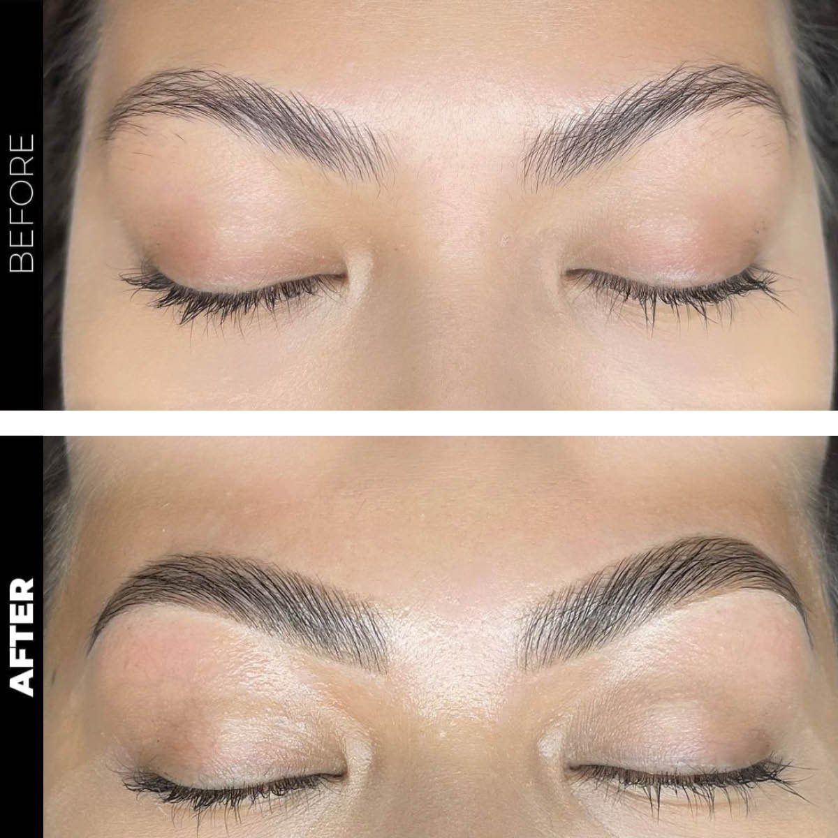 Love the look of fluffy manicured brows? Brow lamination gives them a set, uniform shape, allowing brow hair stay brushed and lifted upward for about six weeks.